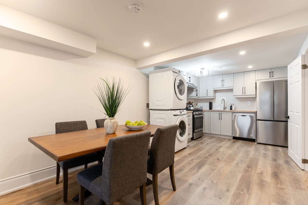 Masiyahan sa isang naka - istilong 1 - bedroom walkout basement apartment na may pribadong pasukan - perpekto para sa komportable at nakakarelaks na pamamalagi. Kasama sa mga feature ang kumpletong kusina, modernong banyo na may mararangyang rain shower, libreng Wi - Fi, at maliwanag na sala na may malalaking bintana at 2 TV. Lumabas sa iyong pribadong seating area, at mag - enjoy sa libreng paradahan ilang hakbang lang mula sa iyong pinto. Sa pamamagitan ng na - update na disenyo at mga pinag - isipang detalye nito, pinagsasama ng retreat na ito ang kaginhawaan at kaginhawaan.