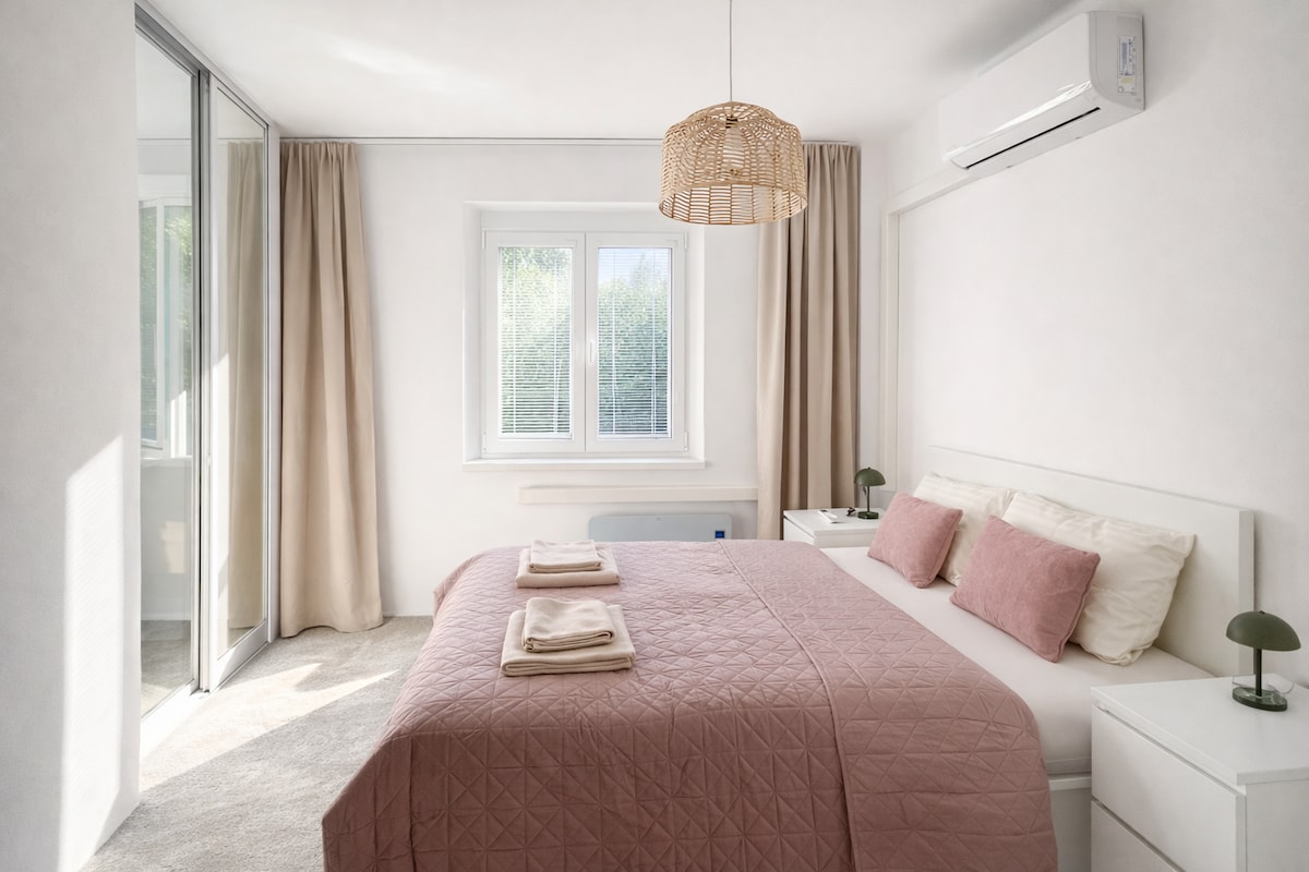 Ang isang room apartment ay nasa maigsing distansya mula sa maraming restaurant, club at at Bratislava landmark (hal. Main Square, Historic Opera House, Old Town Hall). Madaling ma - access sa paligid ng lungsod mula sa mga kalapit na istasyon ng pampublikong transportasyon. Kumpleto sa gamit na kusina na may mga kagamitan at pangunahing lutuan. Foldout queen size bed. Ang natitiklop na sofa (ay kumportableng tumatanggap ng isang tao). Banyo na may bathtub. May mga sapin at tuwalya.