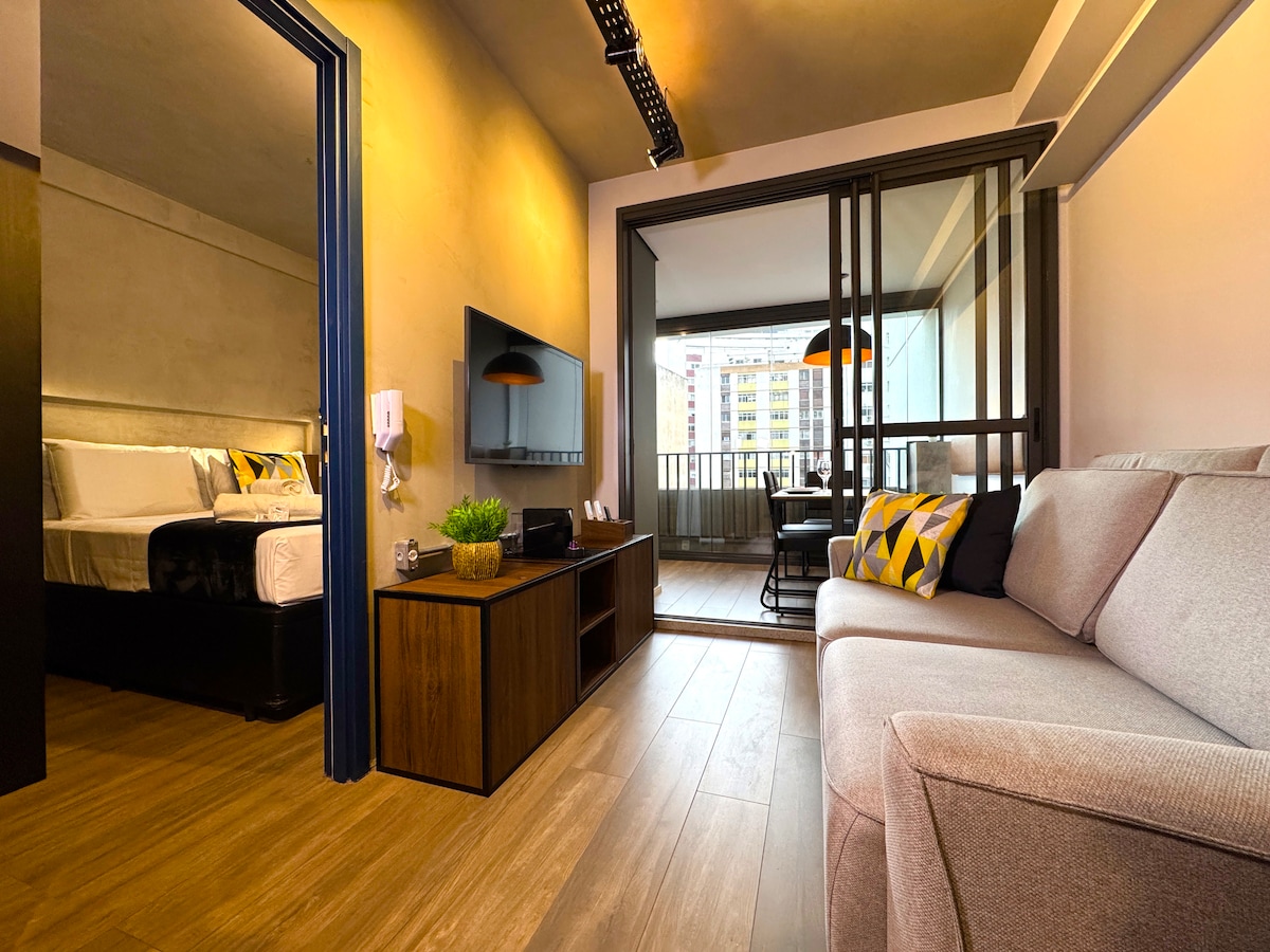 Maestilong studio na nilagdaan ng arkitekto mula sa @estudio.465 noong Nobyembre 25. Bago at walang kapintasan ang lahat, na idinisenyo para tanggapin ka nang may kumpleto at eleganteng kaginhawaan. Playa Copacabana - 5 minutong lakad Ipanema Beach - 8 minutong lakad Playa Arpoador - 12 minutong lakad Sa harap ng istasyon ng subway na General Osório at istasyon ng paupahang bisikleta na Bike Rio Electronic lock (sariling pag - check in) Double Bed - Single Pullout Bed sa ilalim Airconditioned Washing Machine Workbench TV 50 ° Minibar; Cooktop Induction ° Microwave; Nespresso