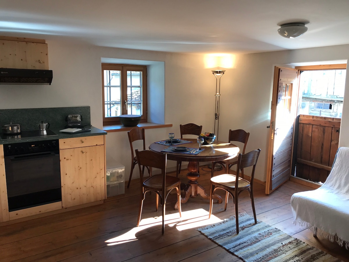 Matatagpuan ang moderno at naka - istilong inayos na duplex apartment na may fireplace sa isang tipikal na Engadine house. Nakatira/kumakain sa itaas, natutulog kasama ang pagbibihis sa ibaba. 300 metro lang ang layo ng Lake Silvaplan. Available sa labas ng pinto ang mga sports facility tulad ng kitesurfing, pagbibisikleta, hiking, tennis, cross - country skiing. Maaari mong maabot ang ski resort sa loob lamang ng 10 minuto. Mula sa garden seating area na may barbecue, napakaganda ng tanawin ng mga bundok. Tangkilikin ang mga hindi malilimutang araw sa labas o sa maaliwalas na sala sa harap ng fireplace