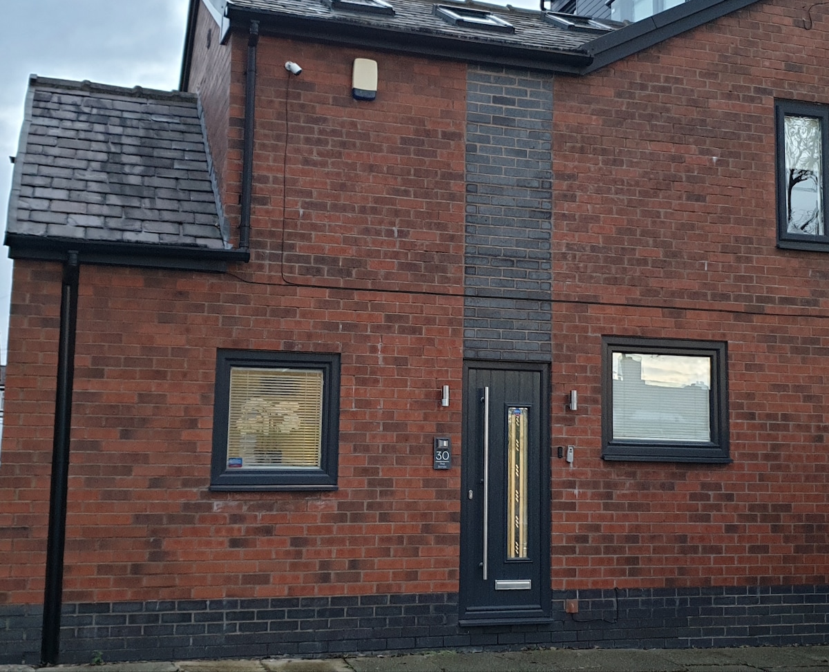 Malinis at modernong 2 bed house Matatagpuan sa isang tahimik na residential area ngunit may magandang access sa Manchester at mga link sa Liverpool at sa Lake District. May mga pub na 3 -4 na minutong biyahe at 3 minutong biyahe papunta sa iba 't ibang grocery shop. Perpekto para sa mga Pamilya, Kaibigan, Holidaymakers, Grupo, Business Travellers, Kontratista. Kasama sa lounge area ang dining table at 65" smart TV. May king size bed at double bed ang mga kuwarto nang paisa - isa. Natatanging naka - istilong banyo at kusinang kumpleto sa kagamitan đ