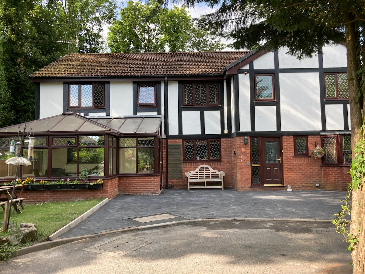 Ang aming kaakit - akit at bagong itinayong hiwalay na bungalow ay ang perpektong lugar para makapagpahinga . Malapit sa Manchester para sa mga araw out at masarap na kainan . Nasa pribadong gated complex ang property. Nagtatampok ng magandang maluwang na pasilyo na may dalawang kumpletong aparador para sa imbakan ng damit at sapatos, pati na rin ng bukas na plano, kainan sa kusina; na may washing machine, dishwasher, refrigerator, freezer, built - in na cooker, tatlong deluxe breakfast barstool at hob. Dalawang maluwang na double bedroom, mararangyang pangunahing banyo na may walk - in shower.