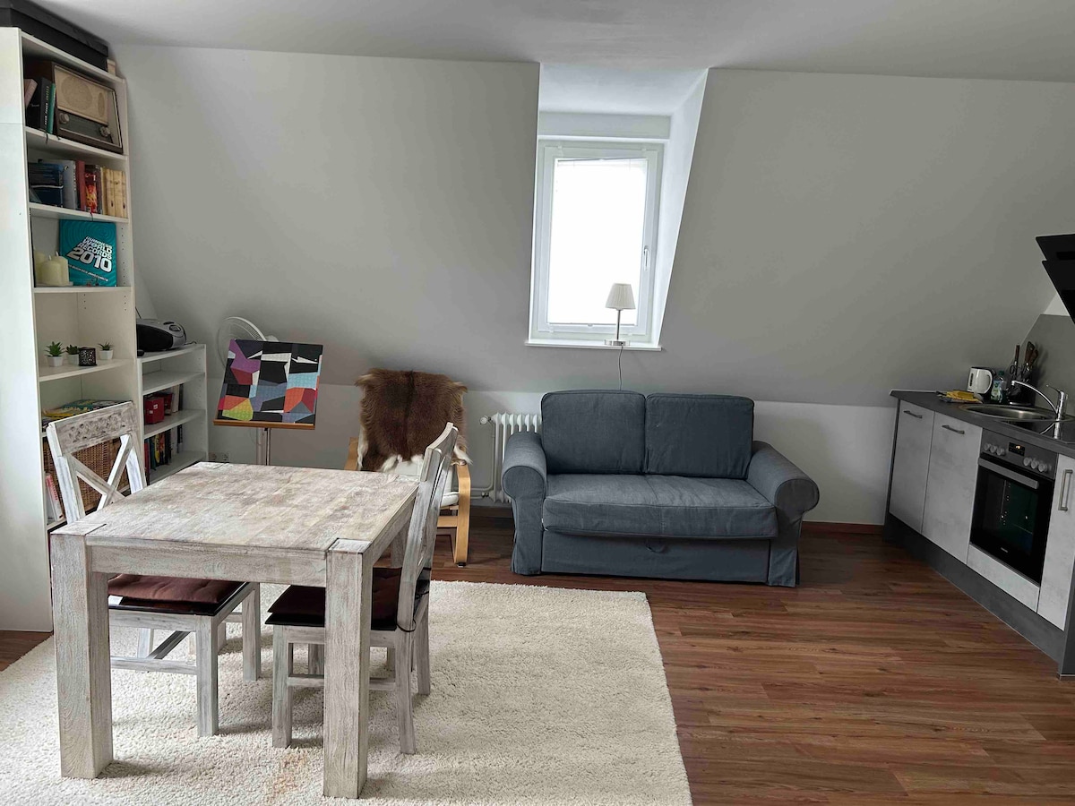 Maliwanag na studio sa isang nakalista at inayos na Gründerzeit villa sa tahimik na Freiburg villa district ng Wiehre. 600 metro ang layo ng sentro. Sa lugar ay maraming magagandang pub, restawran at magagandang pasilidad sa pamimili. Ang apartment ay may bagong fitted kitchen (kitchenette) kabilang ang dishwasher, upang ang isang bukas na living - dining area ay nilikha (ang kusina ay hindi isang hiwalay na silid). Bukod pa rito, may bago at modernong banyong may malaking shower cabin ang apartment.