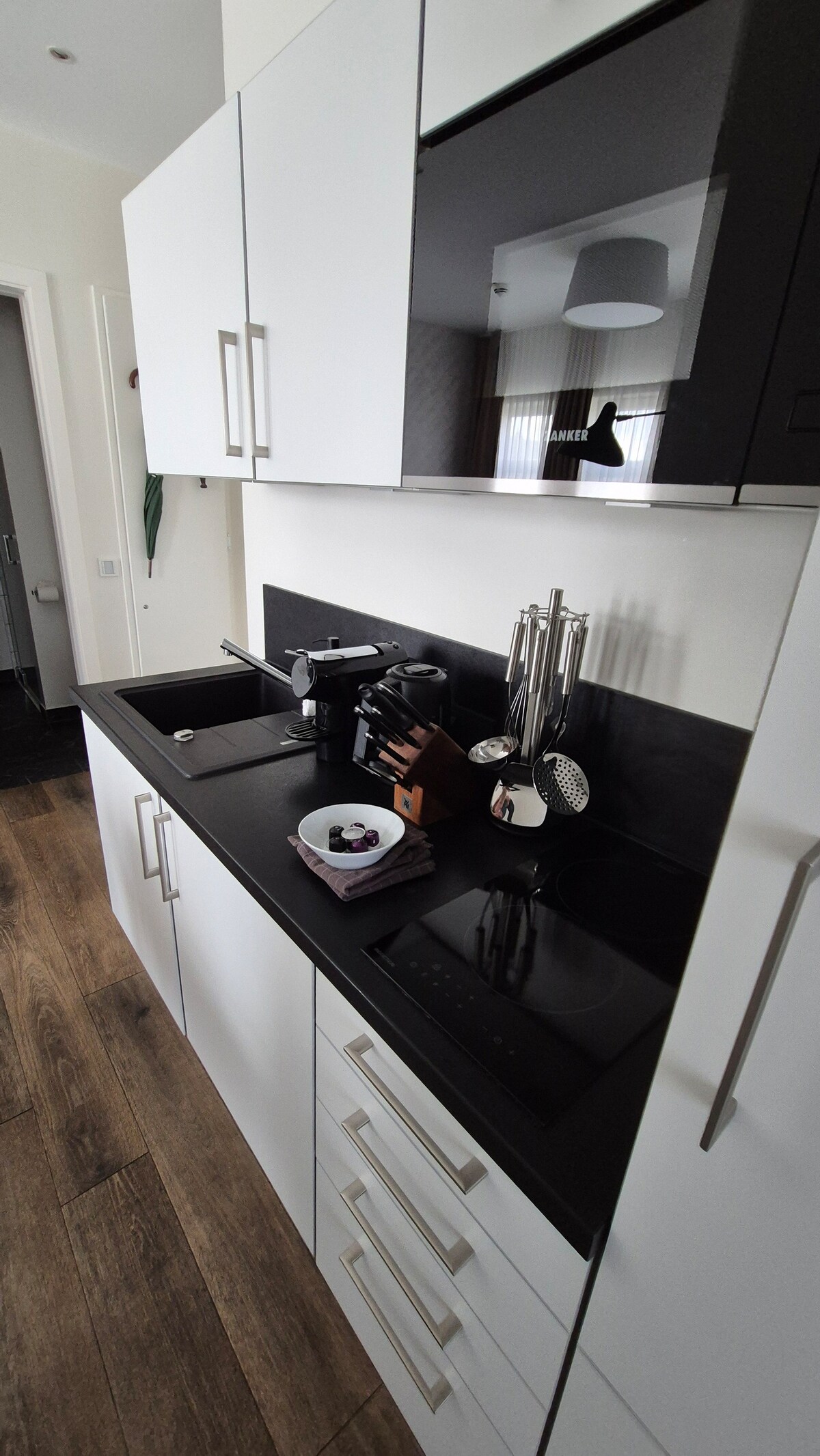 Masiyahan sa isang naka - istilong karanasan sa sentral na lugar na ito. Matatagpuan ang 54 sqm na marangyang apartment sa ibabang palapag ng gusali ng apartment. Isang silid - tulugan (2 pang - isahang higaan) at sala na may sofa bed (bilang double bed), kusina na may lahat ng pangangailangan, banyo na may shower, lababo at toilet. Apartment na hindi paninigarilyo.