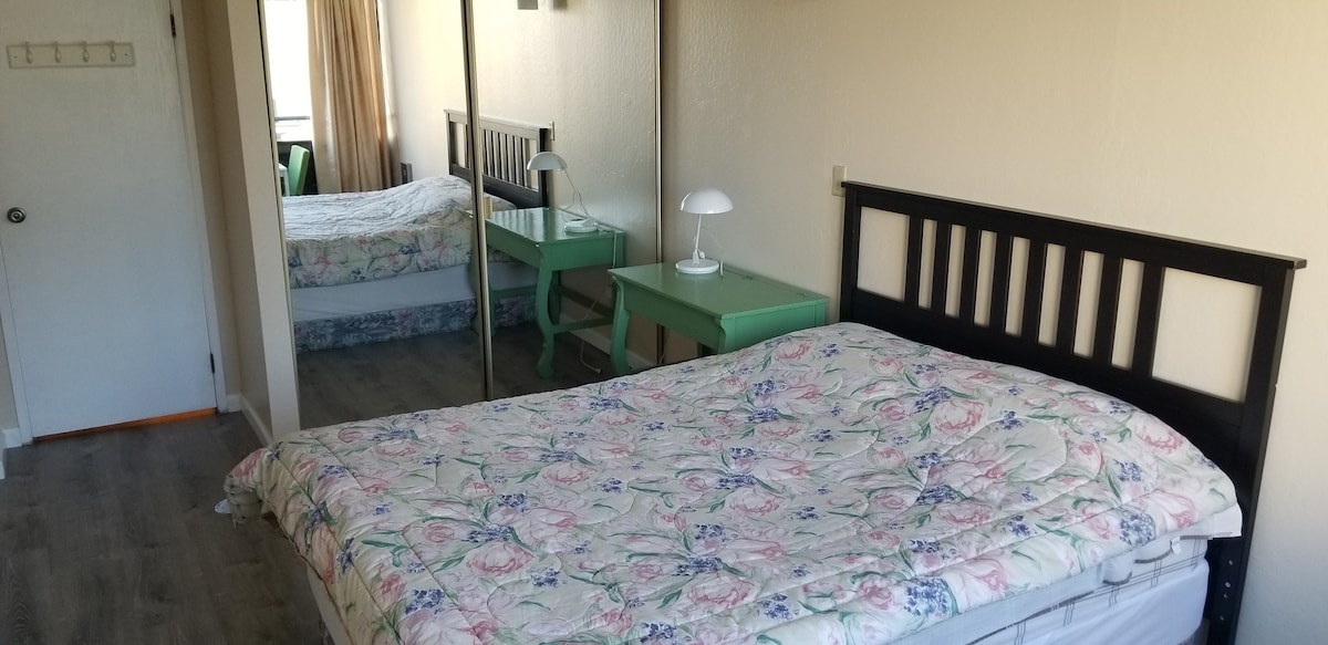Napakadaling puntahan na lokasyon sa Pinakamataas na Palapag! Ganap na pribado at kumpletong apartment na may 1 kuwarto sa tahimik na lugar; may 24 na oras na patrol ng seguridad. Mainam ang aking apartment para sa mga solong biyahero, mag - asawa, at business traveler. Liblib at tahimik, pero malapit sa mga restawran at tindahan, sa UC Berkeley, at sa San Francisco. Kasama ang lingguhang propesyonal na serbisyo sa paglilinis. Libreng shuttle papunta sa BART. (Emery Go-around). MALAKING sofa bed sa Sala! Labahan sa gusali. Buwanang matutuluyan.
