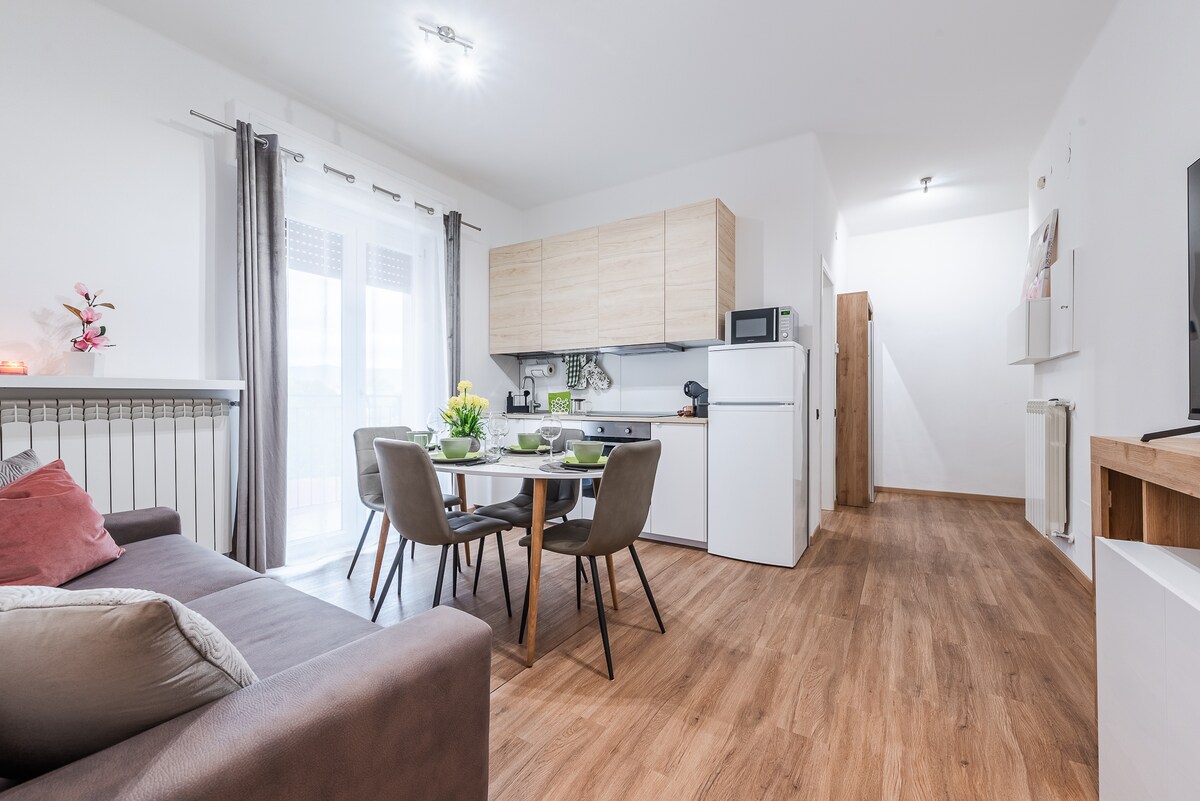 Maligayang Pagdating! Matatagpuan ang apartment sa unang palapag na may elevator. Maingat kong pinili ang bawat detalye at bawat gamit sa loob. Mayroon ding TV, aircon, microwave, kumpletong kusina, maluwang na shower, at lahat ng kailangan mo para maging komportable. Mamamalagi ka sa gitnang bahagi ng Brescia, 500 metro mula sa San Faustino metro station. Bukod pa rito, may posibilidad na makahanap ng may bubong na paradahan na may video surveillance na nasa loob lang ng limang minutong lakad at kasama sa halaga ng iyong pamamalagi 💶.
