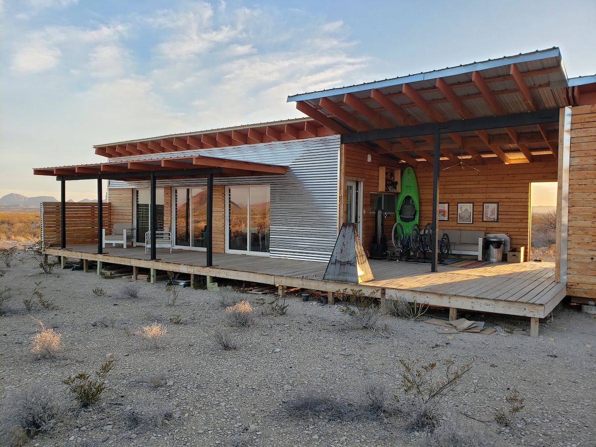 Bahay na malayo sa sibilisasyon sa Terlingua malapit sa Big Bend NP na may malawak na tanawin ng disyerto at hindi kapani-paniwalang pagsikat ng araw at buwan. Kumpletong kusina, ICE Machine, mainit na shower, Star link internet, at madaling ma-access mula sa Hwy 118—mga 25 minuto mula sa Big Bend. Gawang‑kamay, ginawa para maging komportable, at handa para sa mga tahimik na gabi sa ilalim ng mga bituin.