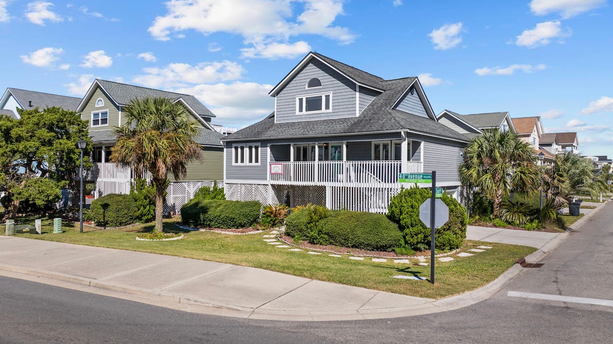 Ang "Attitude Adjustment" ay isang marangyang channel na may walkway at lumulutang na pantalan na nagbibigay ng access sa kanal para sa iyong pangingisda at kasiyahan sa pamamangka. Nagtatampok ang tuluyan ng 4Br, 2BA. Maikling isang bloke na lakad papunta sa Cherry Grove Beach. Lahat ng kailangan mo para sa iyong bakasyon sa beach sa isang nakataas na channel home na may sarili mong pribadong pool. Makikita ng mga bisita ang lahat ng modernong kaginhawahan ng tuluyan, pero may rustic na pakiramdam sa baybayin.