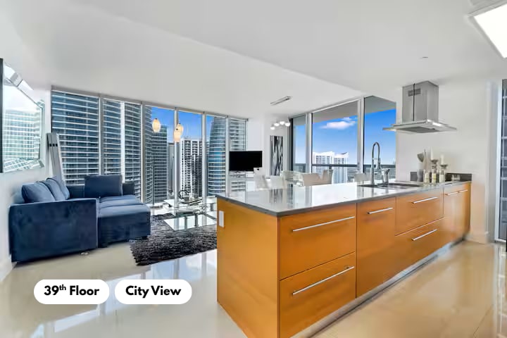 Mga tanawin ng Sunrise bay, 2Br/2BA sa ika -41 palapag, maglakad papunta sa Brickell City Center - kasama ang pambihirang libreng paradahan ng garahe. Gumising sa matataas na tanawin ng karagatan at baybayin sa gitna ng Brickell. Hanggang 10 ang tulugan sa ika -41 palapag na 2Br/2BA penthouse na ito na may pambihirang libreng paradahan sa garahe ng gusali. Maglakad papunta sa Brickell City Center, kainan, at nightlife; pindutin ang pool, hot tub, sauna, at gym; pagkatapos ay magpahinga sa iyong pribadong balkonahe habang kumikislap ang mga ilaw ng lungsod.