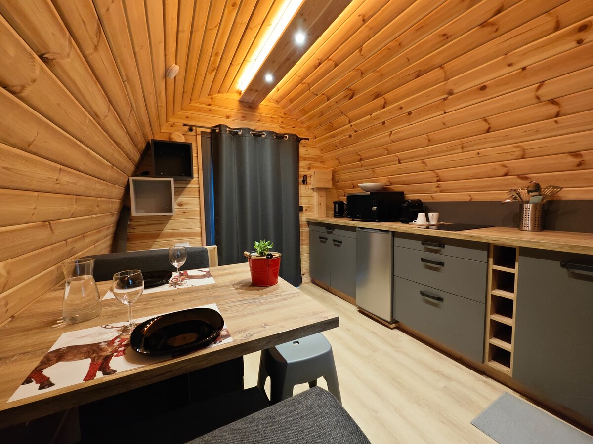 Warm studio para sa 4. Binubuo ito ng sulok sa bundok na may bunk bed, banyong may shower, washing machine, hair dryer at plantsa. Isang sala na may 140x200 na higaan, sofa , foldaway na coffee table para sa mga pagkain. Kusina na nilagyan ng dishwasher, microwave, takure, toaster, dolce gusto coffee maker at tradisyonal na isa na may mangkok, raclette machine at fondue machine. May ibinigay na mga linen. Flat screen TV 80 cm. Lockbox ng code.
