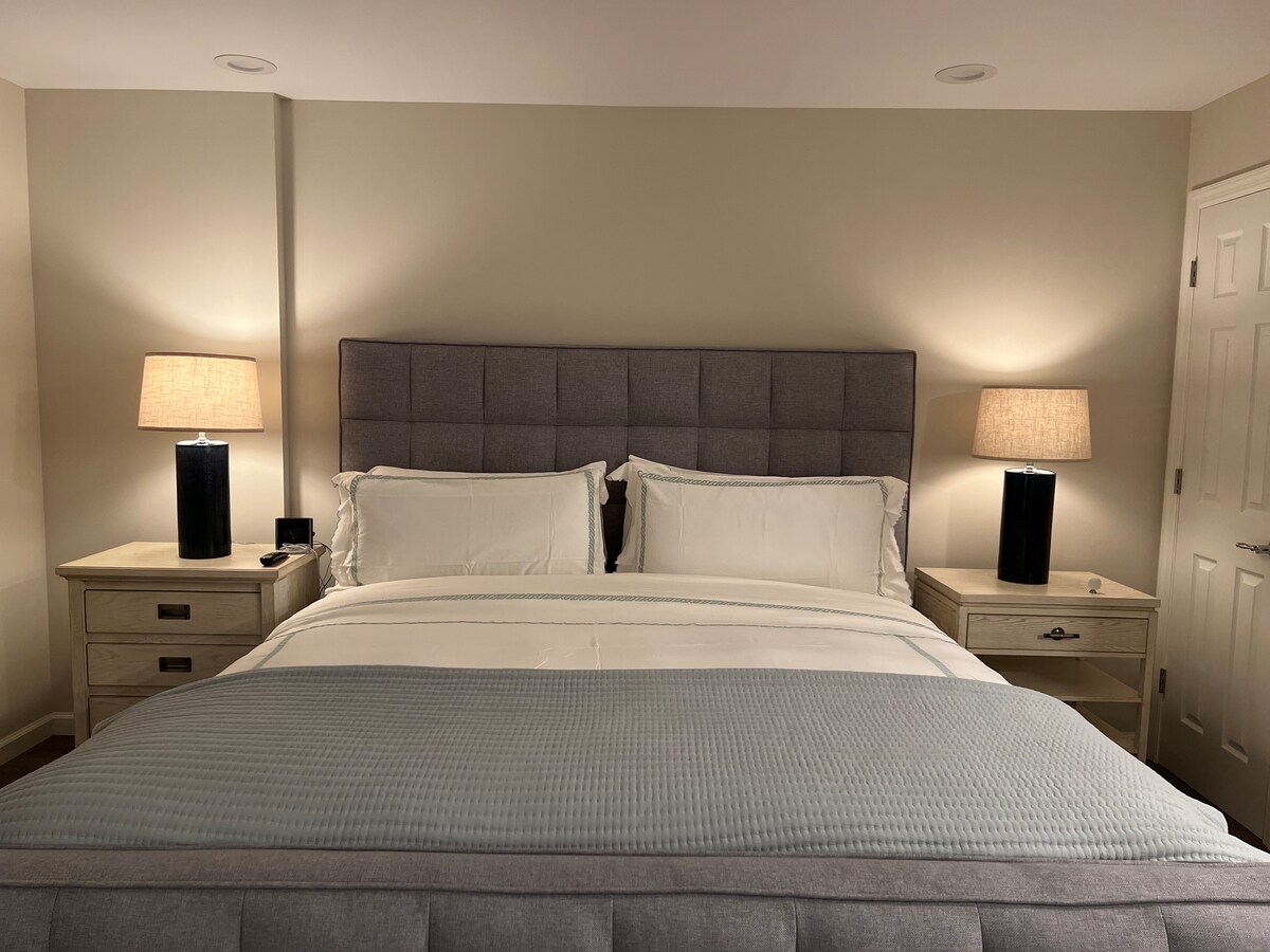 Tangkilikin ang iyong paglagi sa magandang pinalamutian at ganap na pribadong basement apartment na ito - kasama ang lahat ng orihinal na likhang sining - sa gitna ng Hamptons na may dagdag na kaginhawahan ng pagiging malapit sa mga pangunahing bayan at beach. Malaking silid - tulugan na may komportableng king sized bed at mataas na kalidad na kutson at linen. Malaking screen smart TV na may maraming channel. Closet space, well equipped kitchenette, banyong may glass - enclosed shower. Seating area para sa 4 at pangalawang malaking screen smart - TV na may komportableng oversized couch.