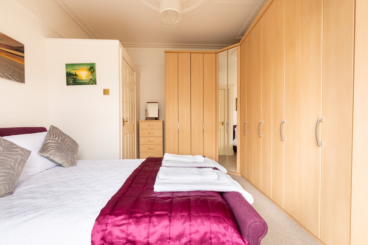 Superhost - Pribadong pang - itaas na palapag na sarili/nakapaloob na flat - kusina/lounge - ensuite - silid - tulugan/lounge - M/wave, Refrigerator/freezer. OPSYON NG 1 IBA PANG KUWARTO AT NAKATALAGANG BANYO sa unang palapag para sa EKSKLUSIBONG PAGGAMIT ng grupo na nag-book at KASAMA SA PRESYO NG BOOKING Isang grupo lang ang puwedeng bumisita. Kung hindi kailangan ang mga dagdag na kuwarto, mananatiling bakante ang mga ito. Available ang kusina/kainan sa sahig, lounge, conservatory at hardin. Fiber WIFI, SkyQ, Netflix Paradahan sa pribadong drive sa labas