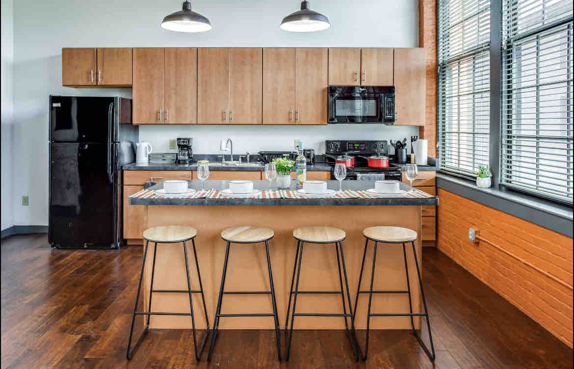 Nagtatampok ang aming loft ng dalawang silid - tulugan at isang bukas na kusina at layout ng sala, na kumpleto sa isang laundry room. Kasama sa banyo ang karaniwang shower/tub at may mga pangunahing kailangan. Nilagyan ang kusina ng lahat ng kailangan mo para makapagluto. Isa itong nakahiwalay na gusali, na nagbibigay sa iyo ng buong apartment para sa privacy. Tandaang malapit ito sa mga track ng tren, na maaaring hindi angkop sa mga light sleeper, may mga puting noise machine sa magkabilang kuwarto para makatulong na mabawasan ang mga kaguluhan.