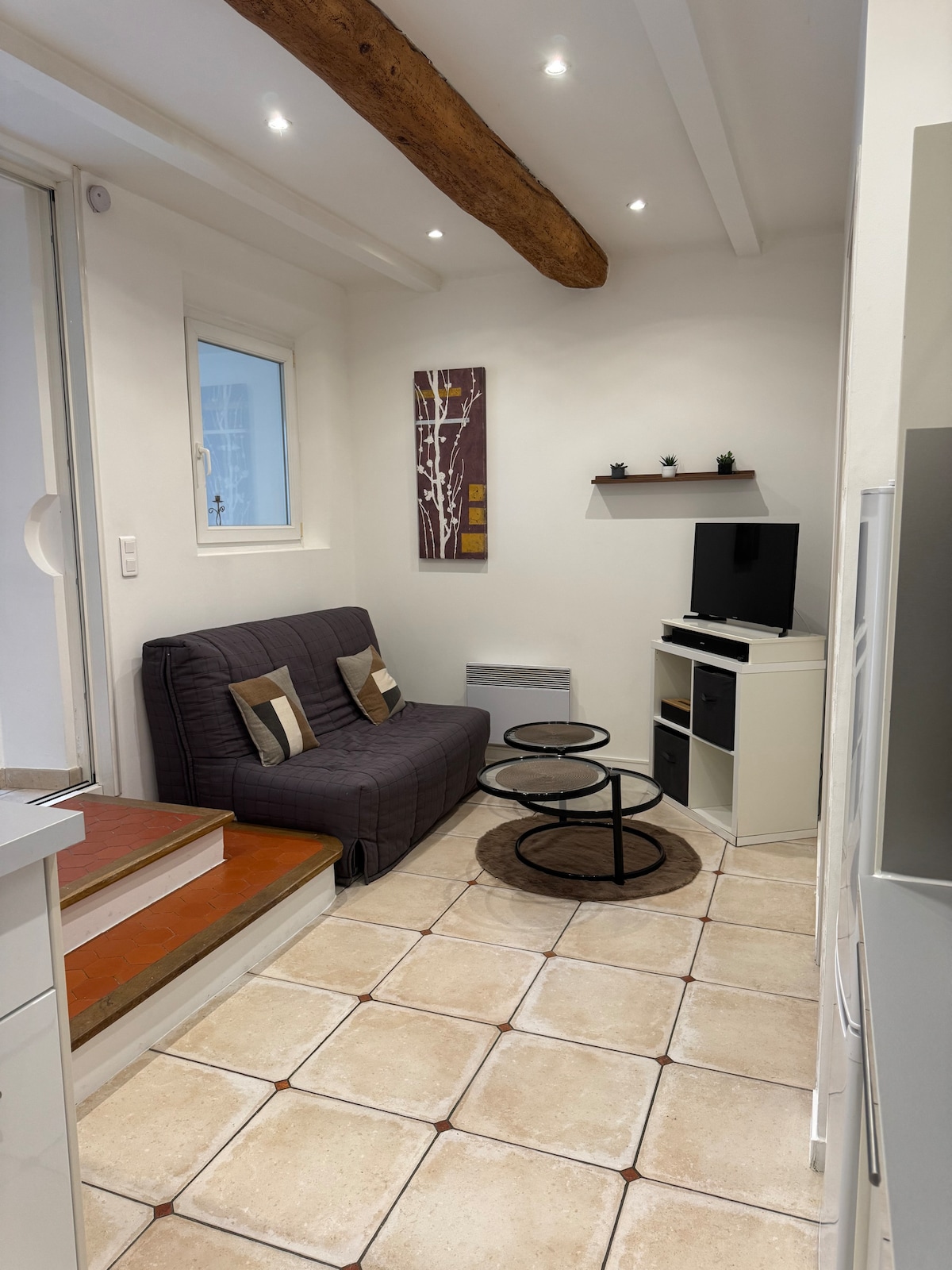 Confortable appartement 2 pièces situé au cœur du village de Montfort sur Argens en Provence Verte. Entièrement rénové et décoré avec soin, L’appartement est en duplex (Rez-de-chaussée et 1er étage). Il est composé d’un salon/ séjour avec canapé convertible et cuisine équipée, d’une chambre avec salle d’eau et WC. Le logement dispose de la climatisation. Nous sommes à proximité des châteaux: Domaine de Fontainebleau, Château de Robernier, et Château de Nestuby. Parking gratuit à côté.
