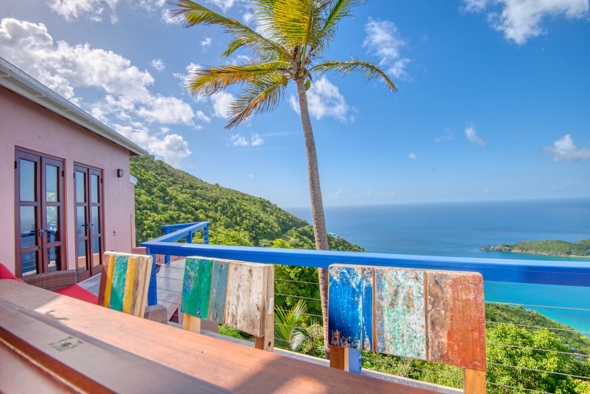Ang Turpentine House ay matatagpuan sa isa sa mga pinakamataas na punto ng Havers, na matatagpuan sa pinakamalaking isla ng BVI, Tortola. Ang tanawin ay humahantong sa Sir Francis Drake Channel at Cooper Island sa silangan, kaysa sa Salt,- Peter -, at Norman Island sa St. John at St. Thomas sa kanluran. Sa likod, puwede mong tangkilikin ang tanawin sa ibabaw ng Sea Cows Bay. Masisiyahan ka sa kamangha - manghang pagsikat ng araw pati na rin magugustuhan mo ang mga kamangha - manghang sunset.