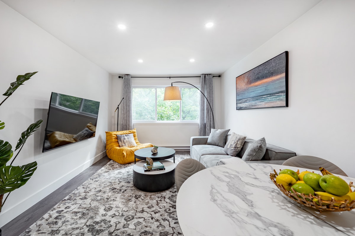 Malapit ang 2 BR Apartment na ito na may kumpletong kagamitan at komportableng 2 BR na matatagpuan sa Brossard sa downtown ng Montreal , DIX30 Mall, bagong istasyon ng Tram, grocery, Mga Restawran. 10 minutong lakad papunta sa bagong Tram Station Du Quartier, 10 minutong lakad papunta sa Dix30 Mall, 15 minutong papunta sa Downton Montreal sakay ng tren. Nilagyan ng lahat ng kailangan mo, nilagyan ng lasa at kasing homely ng nakukuha nito, nilagyan ang mga kuwarto ng Queen bed at Double bed. Isang suite na banyo, ang iyong sariling pribadong terrace. May komportableng malaking sofa ang sala.