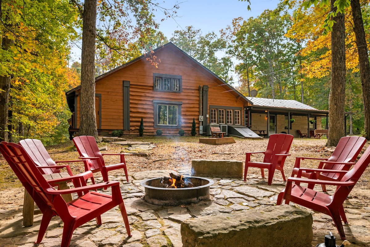 Experience the charm of Brown County in this spacious cabin located just 20 minutes from all that downtown Nashville has to offer. Enjoy the warmth of the fireplace, unwind in the hot tub, watch a movie in the theater, stay fit in the private gym, and get cozy around the firepit. There's even a play set for the little ones to enjoy. With serene views and so much to do, there are endless activities to create your next unforgettable getaway!