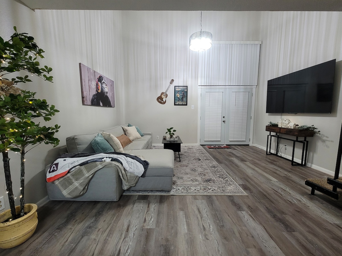 The SNUG provides EXCEPTIONAL LIVING ARRANGEMENTS at an UNBELIEVABLE RATE & comes with NO EXTRA CLEANING FEES!! 1. desk to work 2. fast WiFi 3. mini fridge 4. microwave 5. huge 65' TV 6. Keurig Coffee Maker 7. NO CLEANING FEE 8. Pet Friendly and just minutes from our main strip here at Brownwood such as restaurants and grocery stores and of course our beautiful Downtown area !!