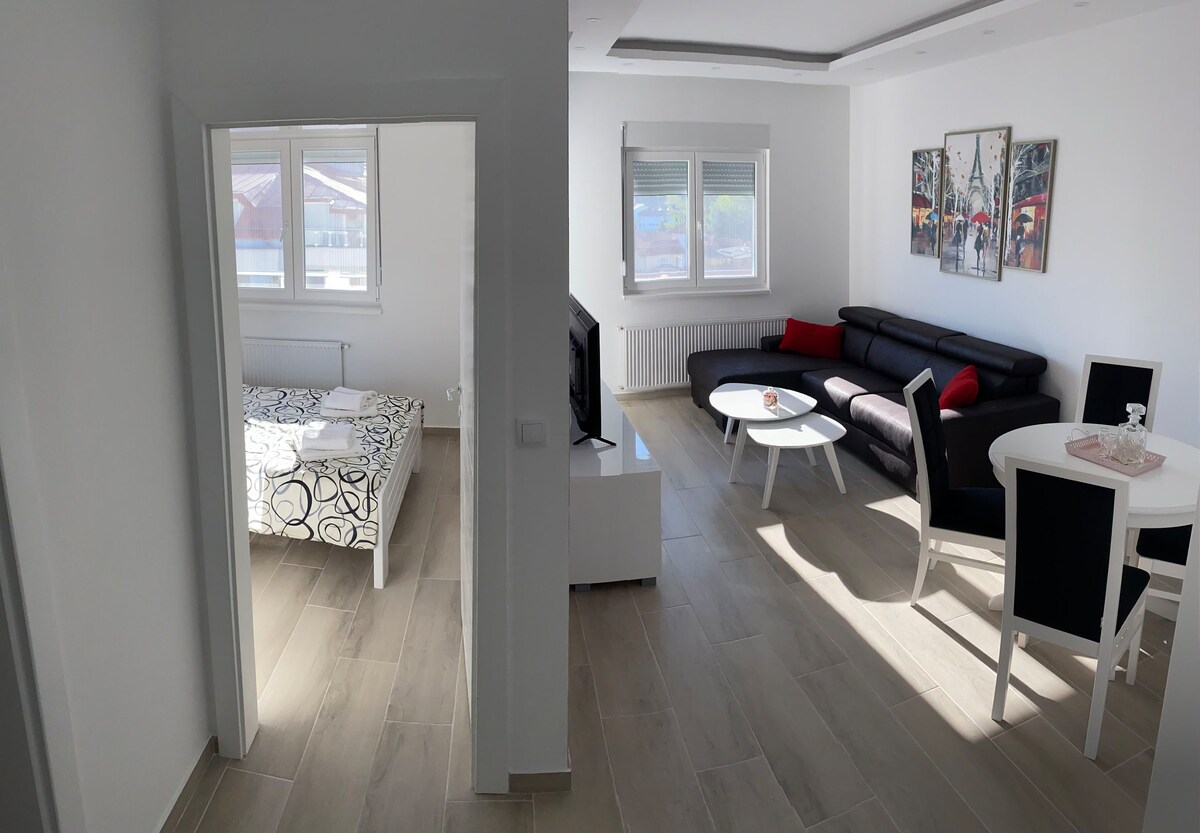 Bumalik at magrelaks sa tahimik at naka - istilong tuluyan na ito. Nasa labas mismo ng pinto ng modernong komportableng bagong apartment na ito sa Zvornik ang lahat ng gusto mong tuklasin. 5 minutong lakad lang papunta sa sentro at 7 minutong biyahe papunta sa tawiran ng hangganan ng Karakaj. Maginhawang lokasyon: 1h sa Tuzla Airport, 2h sa Sarajevo, at 2h sa Belgrade. Angkop para sa pangmatagalan at panandaliang pamamalagi.