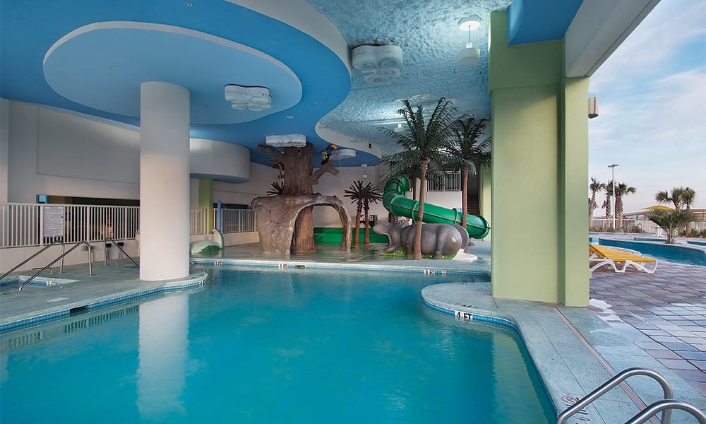 Ipinagmamalaki ng Cherry Grove Beach, ang koronang hiyas ng Grand Strand ng South Carolina, ang numero unong beach ng estado. Nagbibigay-daan sa iyo ang modernong resort na ito na tamasahin ang napakarilag na baybayin, na ilang hakbang lang ang layo ng beach. Bumalik sa resort, lounge poolside na may mga komplimentaryong treat. Sumali sa isang laro ng poolside bingo o pumunta sa isang scavenger hunt para sa mga seashell at ngipin ng pating.