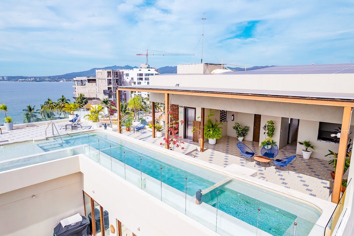 Sumérgete en la elegancia y serenidad del nuevo y exclusivo desarrollo a pie de playa de Bucerías. -Alberca climatizada -Jacuzzi con hidromasaje -Restaurante bar frente al mar -Estacionamiento techado y seguridad 24/7 -Wifi de alta velocidad en todo el condominio -Cuarto de juegos incluyendo billar, mesa de póquer y sala con pantalla gigante -Terraza en azotea con vista increíble -Fireplace volado al mar -Camas y camastros -Zona de parrillada -Gimnasio y spa