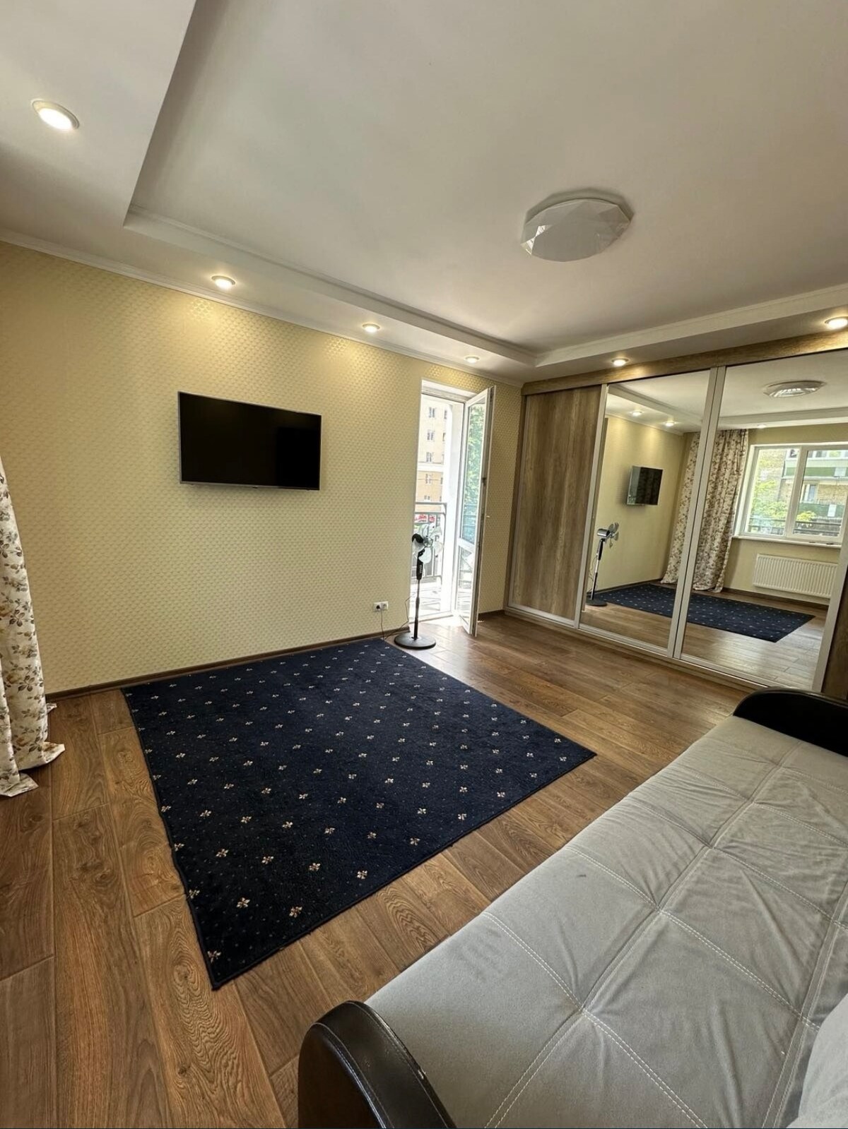 Magandang maluwang na apartment sa gated complex na may tanawin ng bakuran. Kabilang ang bahay sa pribadong sektor, na magbibigay sa iyo ng katahimikan. Sa loob ng maigsing distansya papunta sa istasyon ng tren, mga ATB supermarket, Fora, center, minibus papunta sa Kiev. Naka - istilong pagkukumpuni ang apartment. May malawak na 180cm na higaan at maliit na natitiklop na sofa na 140cm ang lapad na puwedeng tumanggap ng dalawang bata o may sapat na gulang