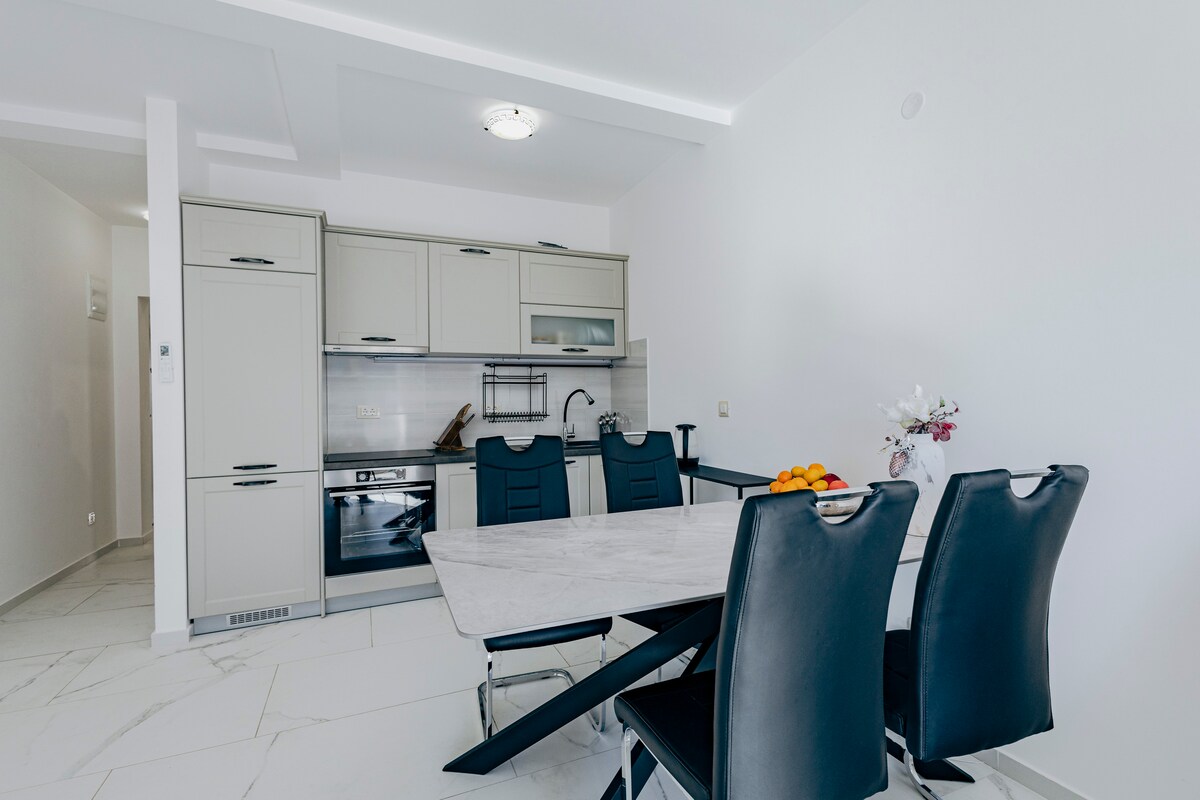 Luxury 2-bedroom penthouse in a peaceful area with breathtaking sea view from apartment and private 100m2 terrace. Enjoy a seasonal pool & jacuzzy (shared, open June 1 – Oct 1), gym, sauna & kids play room for ultimate relaxation. Perfect for families, friends, or couples seeking tranquility while staying close to attractions. Stylish, comfortable, and ideal for an unforgettable Adriatic getaway. Book now and enjoy the beauty of the coast!