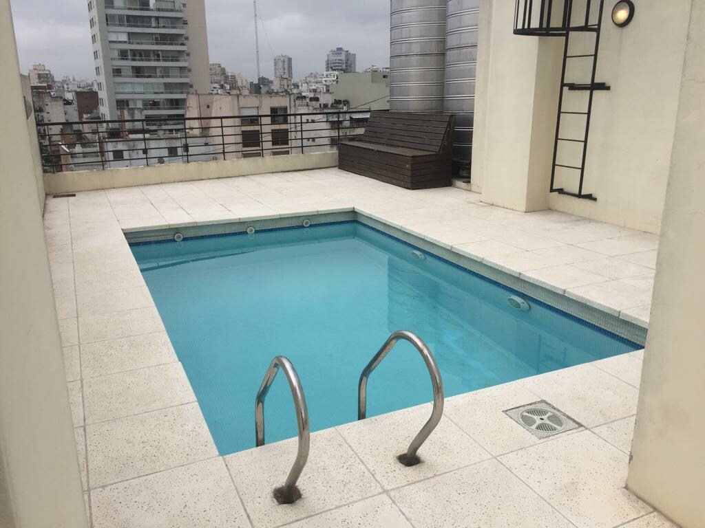 Newly decorated studio apartment. There is an double bed. The apartment has been decorated to a high standard to make your stay as comfortable as possible. There is a laundry service in the building. The pool is shared and the apartment is located in a quite space in Palemo. Piscina en la terraza del edificio con parrilla y lavadora de ropa.