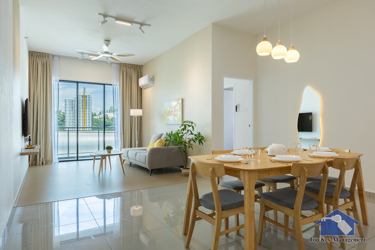 Our brand new cosy suite is perfectly located in the heart of Penang with easy access to local tourist attractions. Japanese/Korean Restaurants & 7-11 convenience store are right below our home! Local food, KFC & Pizza Hut is within 5 mins walk! We Provide • Great hospitality services • Sunrise & City View • PS3 Entertainment & Netflix • 1 Private car park • 100 Mbps WiFi • Infinity Pool View • Fully air-conditioned If you like a quiet & cosy place in this busy city, Don't Wait, Book Now!!!