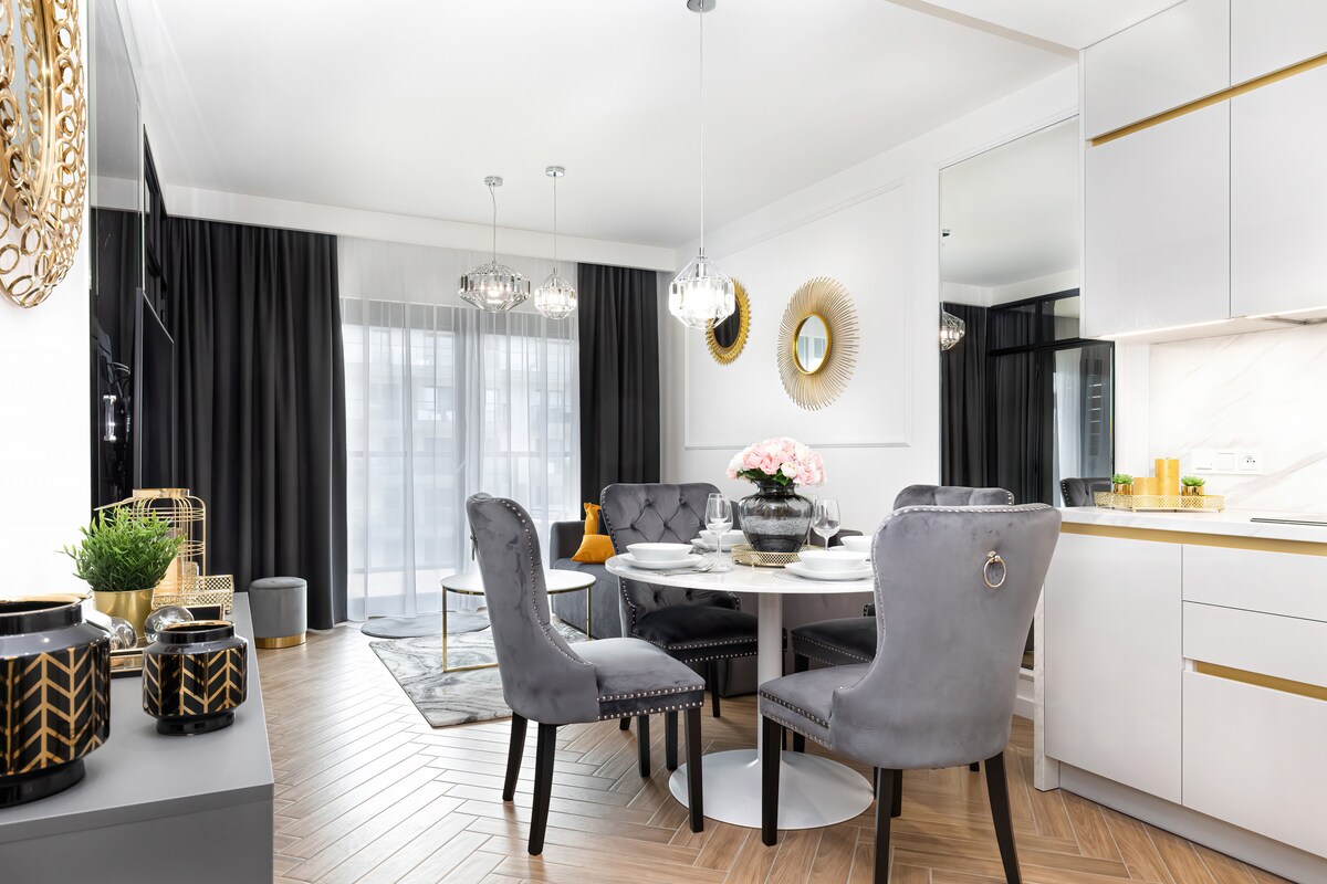 Sauna - Jacuzzi/Whirlpool - Massage chair - 2 x 75-inch TV - 1 x 65-inch TV - WiFi - Ice maker - Safe - Kumpletong kusina - Polish TV Ang aming 70 m² apartment ay matatagpuan nang direkta sa promenade ng Dziwnow at maaaring tumanggap ng hanggang 4 na tao. 150 metro ang layo sa dagat at 100 metro ang layo sa bagong itinayong daungan ng Dziwnów. Sa paligid, may modernong palaruan para sa mga bata at maayos na parke na may iba't ibang kagamitan para sa sports sa labas.