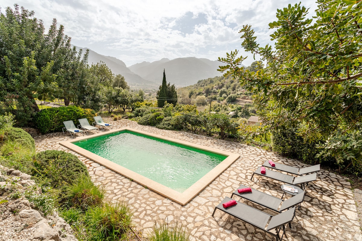Napapalibutan ng hardin, nakaharap ang bahay sa isang malaking swimming pool sa isang tahimik na kapaligiran na may mga tanawin sa Sierra de Tramuntana. Nasa maigsing distansya ang sentro ng lungsod ng Soller. Tinatangkilik ng bahay ang malawak na espasyo na may kasamang modernong kusina na kumpleto sa kagamitan, silid - kainan na may mahabang mesa at komportableng sala na may tsimenea. Hanggang 8 tao ang komportableng makakapamalagi sa bahay na may 4 na silid - tulugan, 3 kumpletong banyo at palikuran. Napakaganda rin ng kagamitan nito (A/C, heating,….).