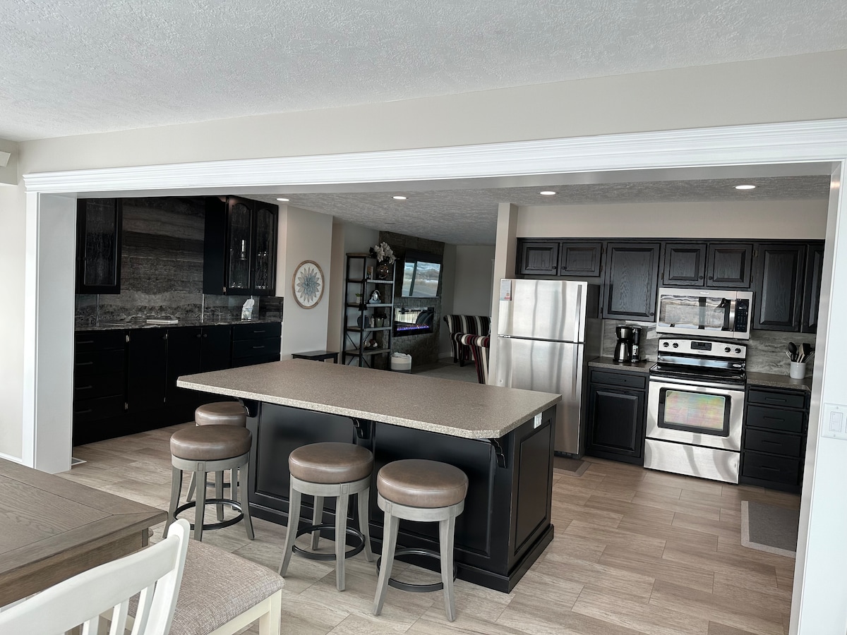 Your family will be close to everything when you stay at this centrally-located place. Right across the street from a park. 2 minutes from our great Snake River with boat docks, kayak/SUP rental, beautiful walking paths, a park and the golf course. We have recently fully renovated this home. Your comfort is our top priority. Master- qu bed & futon with en-suite bathroom. 1 qu bed room. Bunk room w/ 4 twins. Fully fenced yard with covered patio, grill, and fire pit for spending time outside.