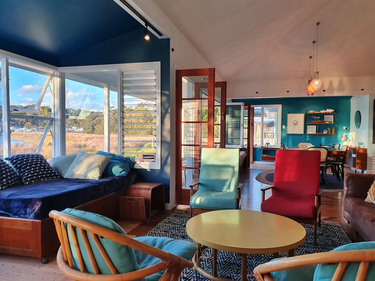 Orihinal na beach holiday cottage kung saan matatanaw ang magandang Burrill Lake Bagong - bagong kusina at banyo, dalawang silid - tulugan at magandang sunroom na may mga verandah sa harap at likod. Napakalaki at pribadong likod - bahay Ang ilang mga hakbang sa panaderya at pinakamahusay na tindahan ng isda at chip sa timog na baybayin ay nangangahulugang walang kinakailangang pagluluto bagaman ang buong kusina at BBQ sa iyong bahay kung kinakailangan Mainam ang lawa para sa paglangoy, pagsakay sa sup, pamamangka at pangingisda (malapit na rampa ng bangka) at 5 minutong lakad papunta sa malinis na Burrill Beach. Malugod na tinatanggap ang maliliit na alagang hayop