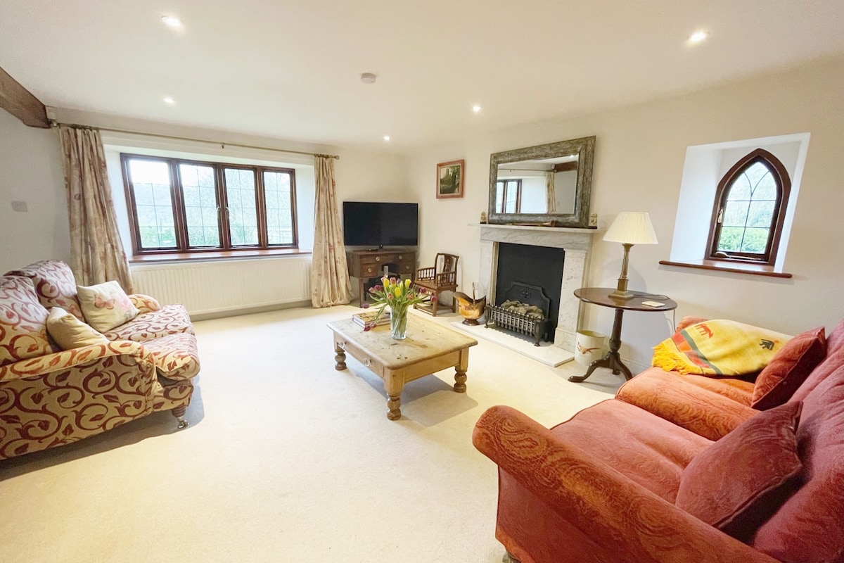 Bato at oak kamalig sa bakuran ng isang grade II na nakalista sa farmhouse. Banayad at maaliwalas ang tuluyan, mayroon itong 2 silid - tulugan at mainam ito para sa mga pamilya o dalawang mag - asawa. Tinatanggap ang mga alagang aso. Kahit na hiwalay mula sa farmhouse, hindi ito self - contained, dahil walang mga pasilidad sa pagluluto, maliban sa isang refrigerator, takure at toaster. Ang mga probisyon ng almusal ay ibinibigay para sa mga bisita sa kanilang paglilibang.