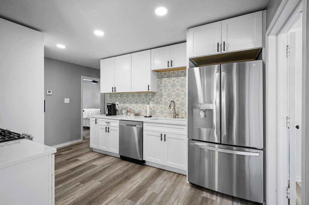 The apartment is above a detached garage. The spacious floor plan is modern and fresh, on-site laundry, a full kitchen, walk-in closet and large private bathroom, this apartment feels just like home. Long term lease is available for a discounted rate. The apartment is located on a busy street (“busy” for a small town) you will hear cars and motorcycles drive by. Please take this into consideration when booking.
