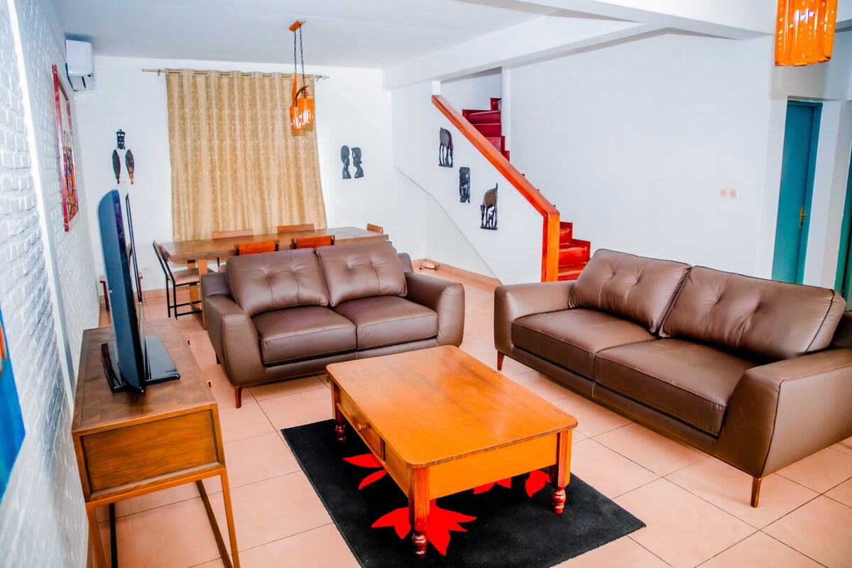 Mararangyang Tuluyan na Malapit sa Downtown Bujumbura Tara sa magandang inayos na mararangyang tuluyan na ito na ilang minuto lang mula sa downtown Bujumbura. Maayos na inayos para sa pagpapahinga at init, ang buong bahay na ito ay nag‑aalok ng isang kaakit‑akit na retreat para sa hanggang 8 bisita. Mag‑enjoy sa 4 na tahimik na kuwarto, 5 banyong parang spa, napakabilis na internet ng Starlink, at ligtas na pribadong paradahan para sa hanggang 4 na sasakyan sa loob ng compound. Perpekto para sa mga pamilya, mag‑asawa, o solong biyahero na naghahanap ng pagiging sopistikado.