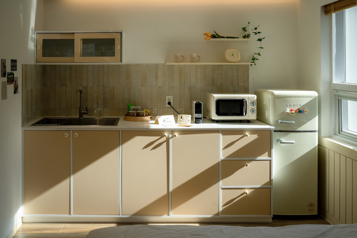 European-style stay sa gitna ng isang cafe sa Jeonpo-dong, may imbakan ng bagahe
