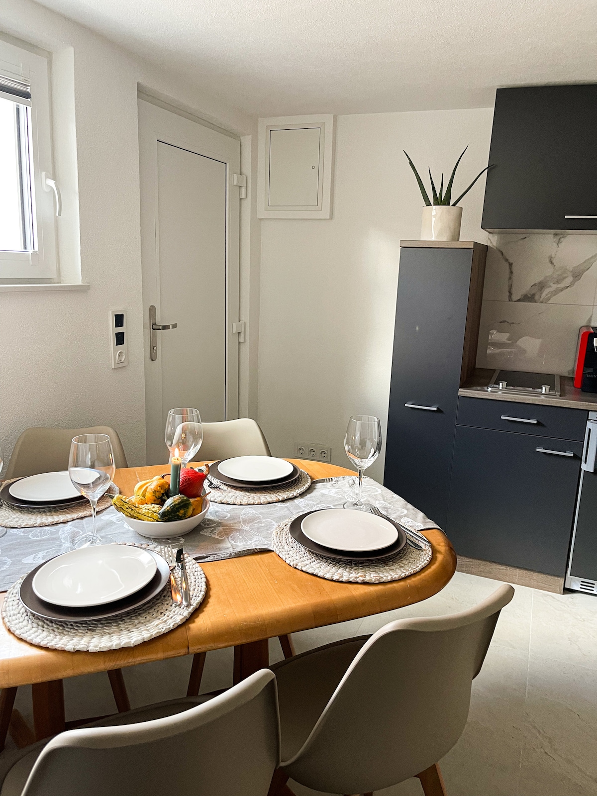 Ang apartment na ito ay komportable at bagong inayos, may 60m² at matatagpuan sa isang tahimik na residential area sa timog na dalisdis ng Gailingen. May malaking sala/tulugan ang apartment na may terrace. Ang pasukan, access sa terrace at banyo ay nasa unang palapag at angkop din para sa mga taong may kapansanan sa paglalakad. Nakataas din ang toilet seat at walang baitang ang shower.