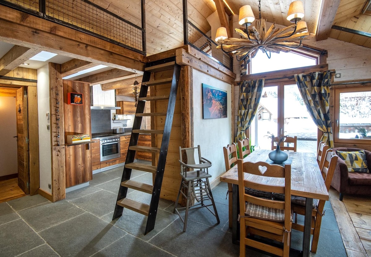 Isang tunay na perlas na nasa berdeng setting, hihikayatin ka ng attic mula sa itaas sa pamamagitan ng tunay at maingat na luho nito. Ganap na independiyenteng chalet apartment para sa 4 na tao, kumpleto ang kagamitan Maliit na balangkas na katabi ng pribadong apartment Malaki at may mga upuan sa labas Naa - access ang Finnish sauna sa buong taon sa terrace Dalawang silid - tulugan na may dalawang banyo Isang solong higaan sa mezzanine bilang dagdag