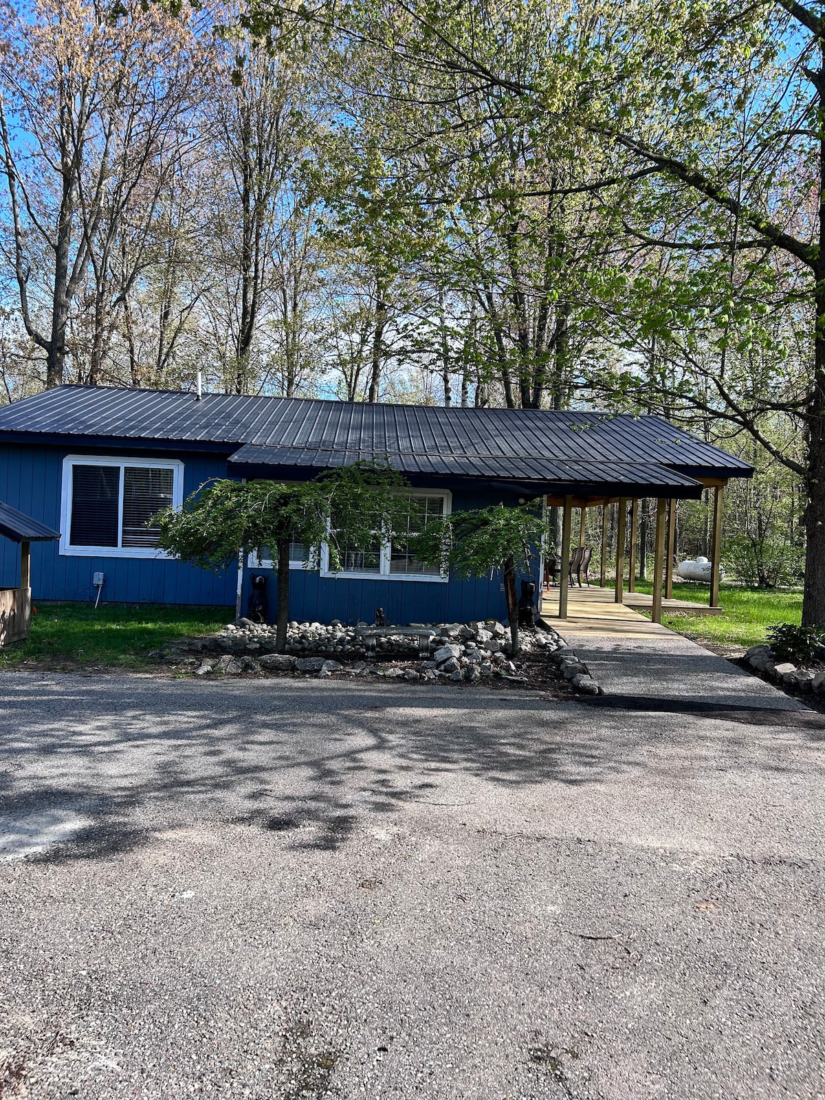 Nasa Pere Marquette rail - trail ang tuluyang ito na may 1000 talampakang kuwadrado, na napapalibutan ng mapayapang bansa. 3 km lamang mula sa ospital at Northwood University. Ang isang minarkahang daanan ng konserbasyon ay nasa kabila ng kalye. Ang Tittabawassee River ay isang maikling jot sa kalsada. Huwag mag - atubiling gamitin ang mga kayak na ibinibigay ko. Tangkilikin ang kape sa deck habang pinapanood ang mga pabo at usa. Tangkilikin ang mga laro sa bakuran at ang bonfire pit. Ihawin gamit ang ibinigay na gas grill. 5 km ang layo ng Tridge at Dow Gardens. Huwag mahiyang mababad ang lahat ng ito:)