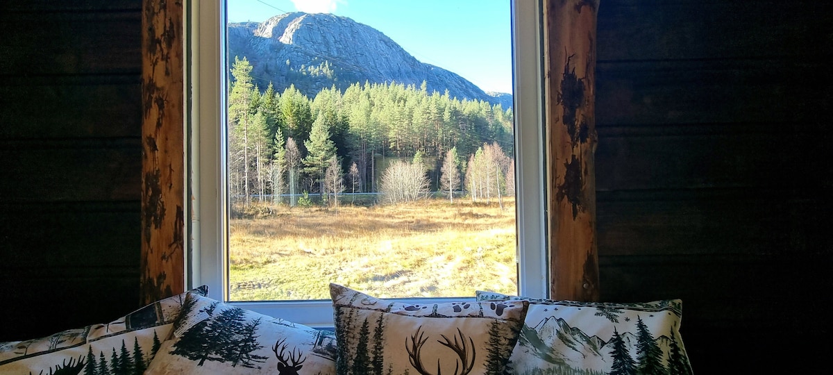 Maginhawang cabin sa magandang kalikasan ng bundok sa Ljosland