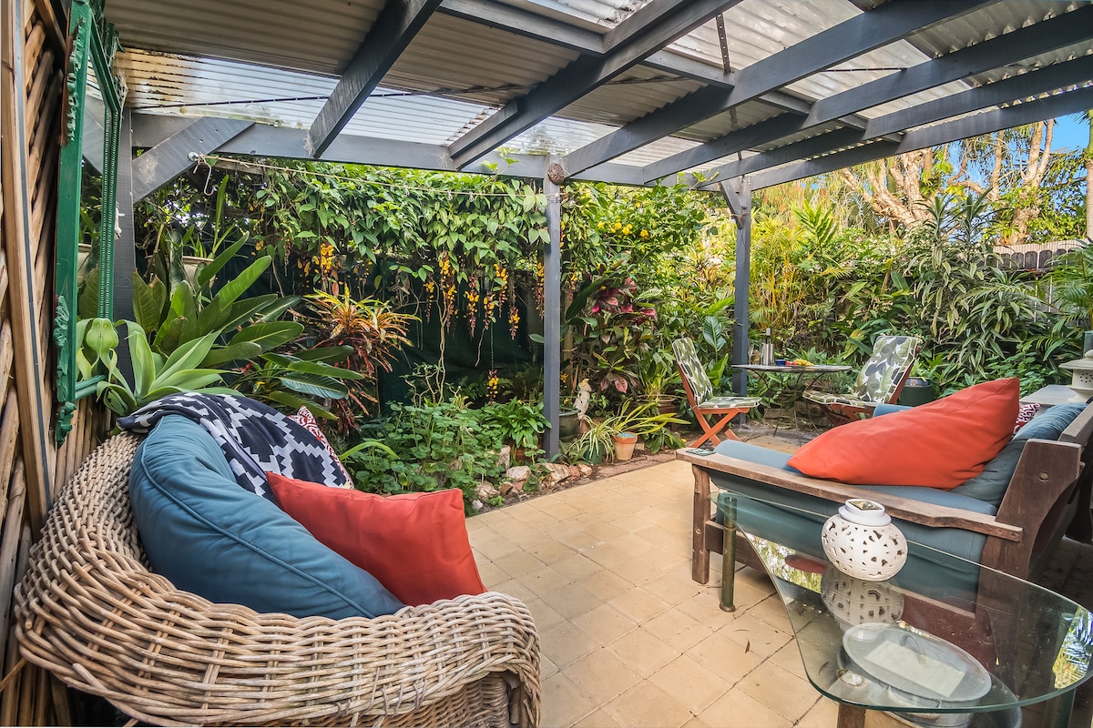 Mula sa sandaling dumaan ka sa gate, nararamdaman mo ang nakakarelaks na Byron vibe! 2 minutong lakad ito papunta sa 'pantry' ng Baz & Shaz, 7 minuto papunta sa Suffolk village, at 15 minuto papunta sa Tallow Beach. 10 minutong biyahe ang layo ng sentro ng Byron. Ang Suite ay may king - sized dbl bed, ensuite, pribadong pasukan, pribadong verandah at courtyard na may mesa at upuan, at desk sa isang nook. May aparador sa kusina na may microwave, bar refrigerator, toaster, takure at babasagin na angkop para sa mga almusal at pangangasiwa ng takeaway.