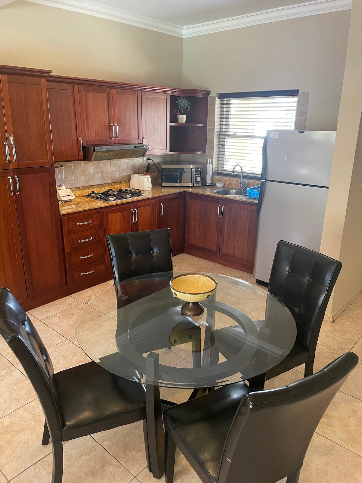 Tahimik ngunit sentral. Hindi "mainam para sa bisita" - mga taong pinangalanan lang sa pagbu - book ang maaaring mamalagi, walang hooker Max. 10 minutong lakad mula sa lahat ng bagay sa Sosua. Duplex apartment, kusina na may kumpletong kagamitan. Ganap na naka - air condition, (hindi kasama sa presyo). Secure site, electronic key entry, night watchman. Wall - safe sa unit. Pribadong WiFi 10 Mbps. 2x43" TV Mga bentilador sa sahig at kisame, screen ng lamok sa lahat ng bintana at pinto. Mga triple - glazed na bintana sa kalye. Mararangyang king - size na higaan. Banyo na may walk - in shower Walang paninigarilyo.