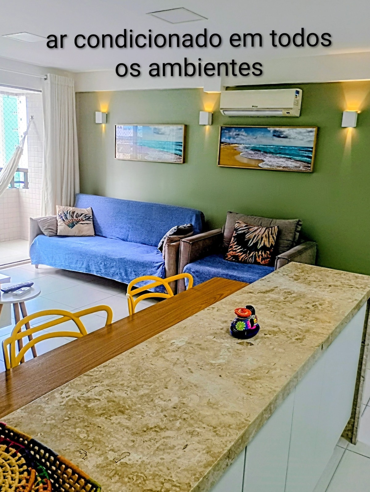 Na - renovate at pinalamutian ng 115m Premium Apartment na may sopistikasyon. 350 metro mula sa Praia de Intermares. 3 Kuwarto: - 1 Malaking Suite - 1 komportableng kuwarto - 1 Opisina na may sofa bed • 2 Sacadas. • 3 Banyo. • Kumpletuhin ang modernong kusina. • 70"TV room at Netflix • Washing machine • Air conditioning sa sala at mga silid - tulugan • Garing space Lokasyon: • 50 metro ng mga gym, restawran at panaderya • Malapit sa magagandang beach ng João Pessoa Binago, moderno at katangi - tangi!