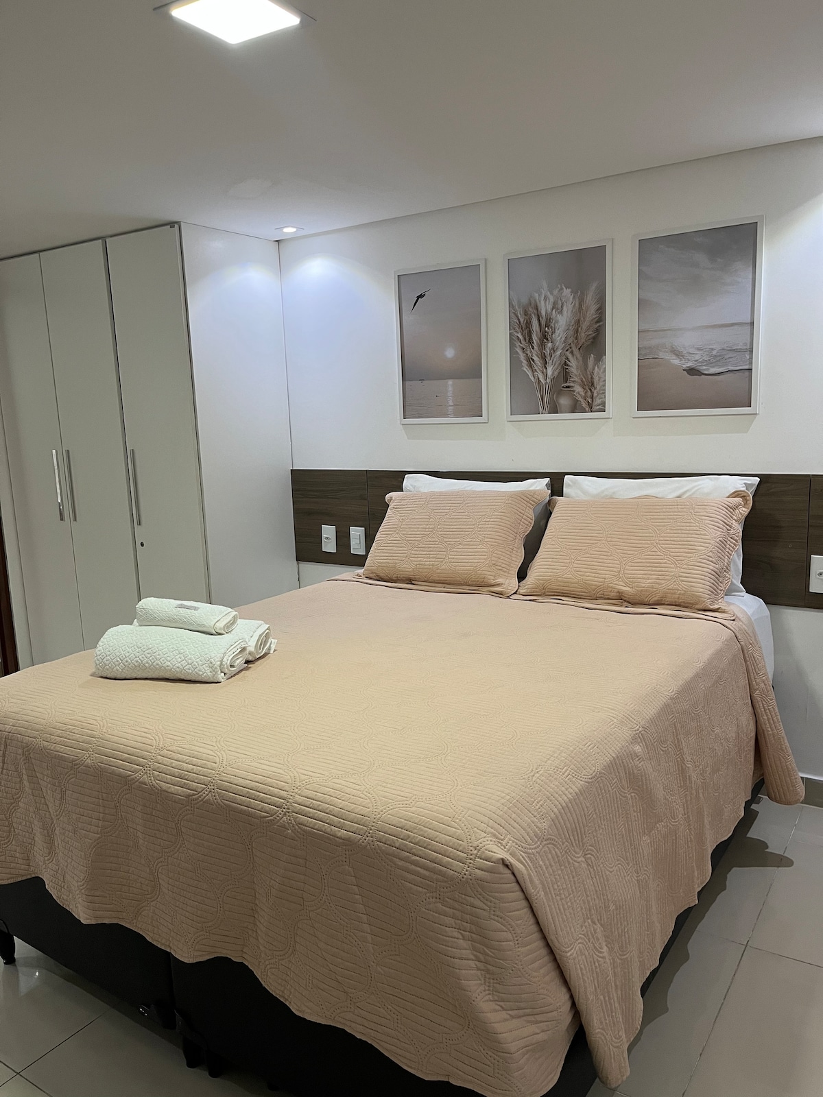 Excelente Flat novo, confortável, mobiliado, a 30 metros da melhor praia, estrutura de hotel, piscina , academia, sala de jogos, sauna, restaurante, lavanderia coletiva, garagem. Acesso à wi-fi e TV a cabo. Possui um quarto com TV e ar, cama box para casal ou duas de solteiro com cama auxiliar. Sala com TV e ar e sofá cama. Cozinha equipada, geladeira, fogão elétrico, microondas, utensílios, etc. Banheiro completo. Armários e gavetas. Temos um contrato assinado pelas duas partes no check in.