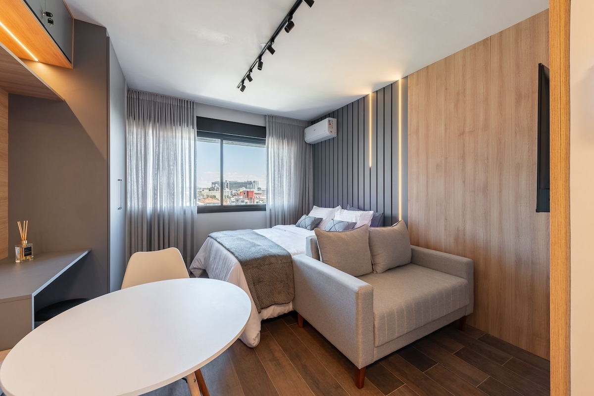 Puwedeng gamitin ng mga bisita ang: Rooftop 19thfloor | Swimming pool | Academy | Laundry | Space co - work • 4min ⟶ PUCRS •15min ⟶ Consulado e Centro • Front desk 24/7 • Mabilis na WiFi • Libreng paradahan sa loob • Elevator • Aircon • SmartTV (Netflix, YouTube, Disney+, Amazon, GloboPlay, +) • Pleksibleng Pag - check in • Mainam para sa alagang hayop • Mga supermarket sa malapit! Nag - aalok kami ng: Mga tuwalya at linen ng higaan:)