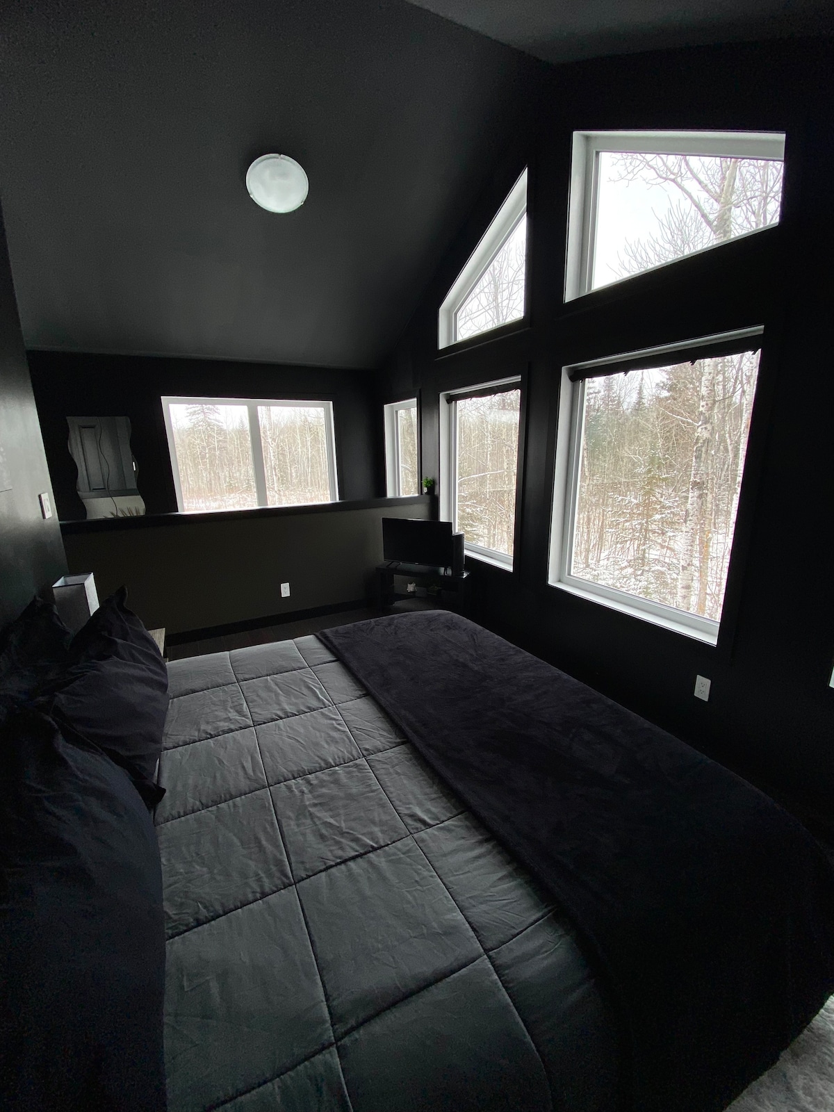 Maligayang pagdating sa Tamarack Shack at Tipi, isang pribadong 160 acres eco resort. Lahat ng bagay sa property na ito Solar at off - Grid! Ito ay isang backwoods karanasan walang tumatakbo tubig solar powered cabin, may sapat na kapangyarihan upang patakbuhin ang lahat ng kailangan mo. May mga walking/biking trail sa buong property. (makisig na cross country ski trail sa taglamig) ay gumugugol ng ilang oras sa Organic pool at barrel sauna . Sa property na ito, ipapaalala sa iyo ang pagiging simple ng buhay, at ang katahimikan ng kalikasan. tunay na eco escape