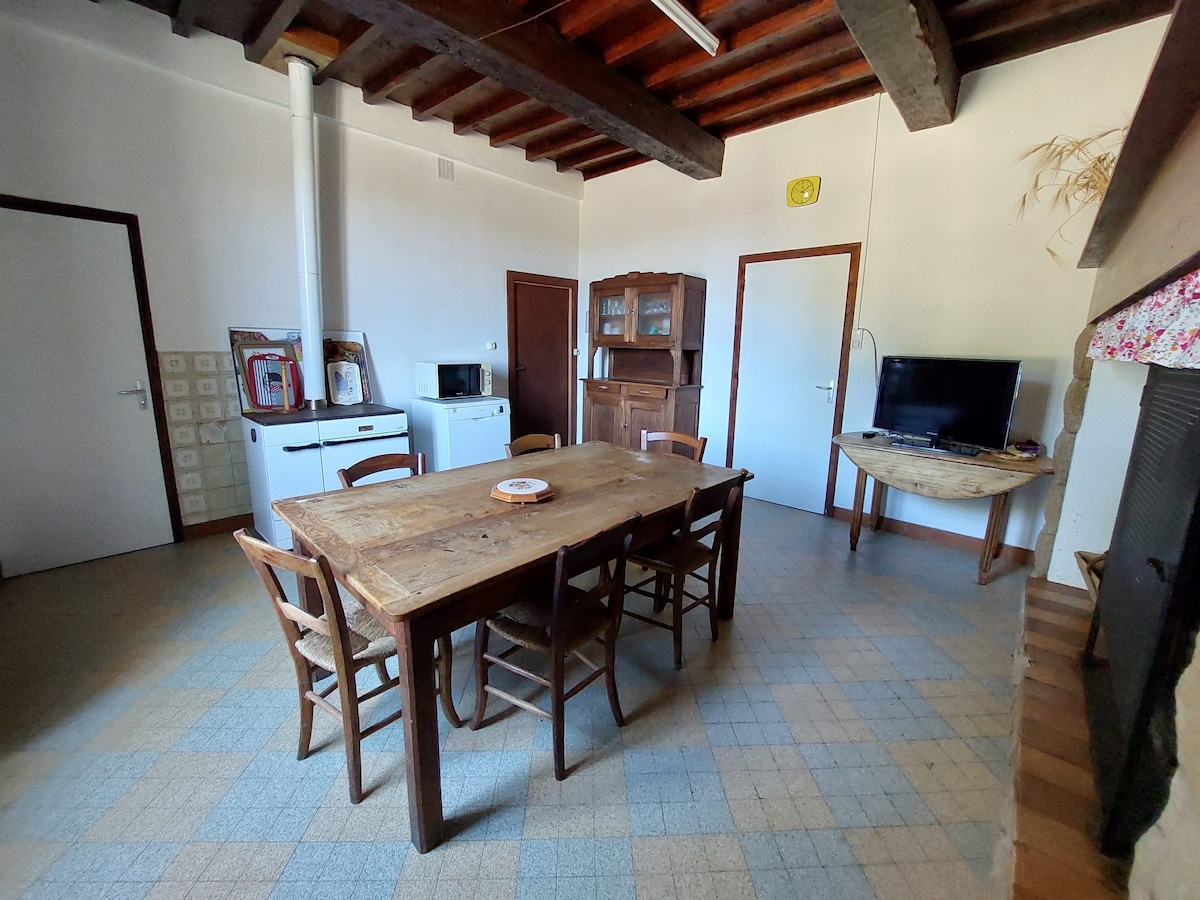 Napakagandang volume (90 m2) na may mataas na rustic na kahoy na kisame. Mga nakalantad na sinag sa itaas kundi pati na rin sa banyo. Isang 7m na mataas na skylight para ma - access ang sahig, ang natatanging estilo ng pabrika nito. Ang gite na ito ay isang dating framing workshop, isang renovation na may maraming atraksyon. Kumpleto ang kagamitan, naka - air condition sa isang tahimik at kaakit - akit na nayon ng Lomagne Gersoise.