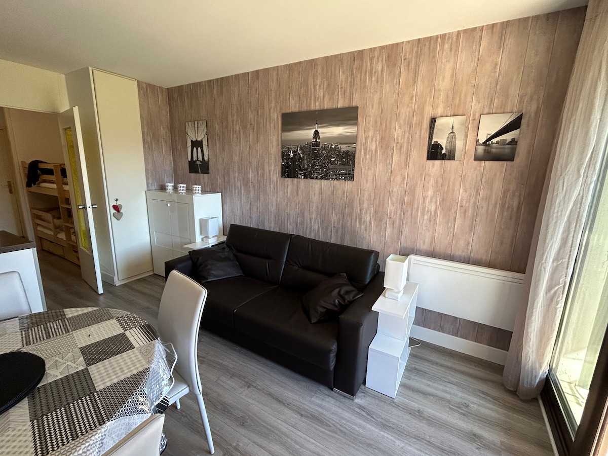 Grand studio 27 m², proche pistes de ski, téléphérique et commerces. Au 3 e étage avec ascenseur, balcon, exposé sud. Entrée coin nuit avec 2 × 2 lits simples superposés. Séjour avec clic clac. Cuisine équipée . Salle de bain et WC séparé. Équipements : oreillers, couettes, penderie, Tv, app raclette, cafetière à filtre et une Nespresso. Parking, Casier à ski, Les locations sont du samedi 14h au samedi 10h.