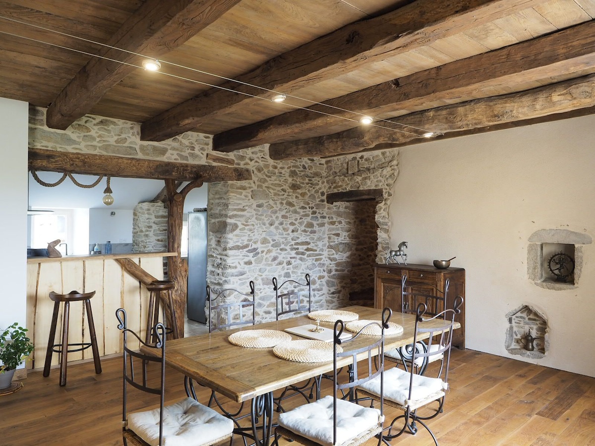 Matatagpuan sa guwang ng lambak, tahimik, napapalibutan ng kalikasan, ang tuluyan ay matatagpuan sa isang bagong na - renovate na kamalig na bahagi ng isang lumang farmhouse. Masisiyahan ka sa simple at mainit na kaginhawaan sa maliwanag na living space. Ang access ay sa pamamagitan ng isang maliit na kalsada na naglilingkod lamang sa lumang farmhouse na ito kung saan kami nakatira. Ang kamalig kung saan ka mamamalagi at ang aming bahay ay independiyente at hindi napapansin. Hayaan ang iyong sarili na lulled sa pamamagitan ng mga tunog ng kalikasan sa pribilehiyong lugar na ito.